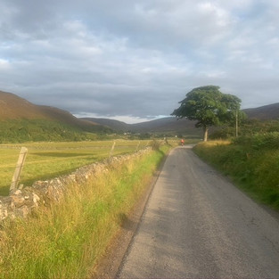The morning ride on Friday was extraordinary, up the Helmsdale valley following the river and railway to the peat heather moors on top. There cannot be that many A roads that are single track with passing places, but that is the nature of the A897. When we started the sun was up but only reached the hill and mountain tops, when it lit the road and browning bracken the full range of autumn colours was revealed. It was warm and sunny for the first part of the climb to Loch an Ruathair at the source of the Helmsdale River. No wind, just river noise and birdsong in this remotest of parts of the UK. Small settlements, isolated farms, a railway station for two or three houses and a Victorian shooting lodge, a church reachable by a small foot bridge are some of the images that stick in my mind. In the valleys birch trees predominate in the lower parts along the river then forestry higher up, higher still are the heather covered peat moorlands.